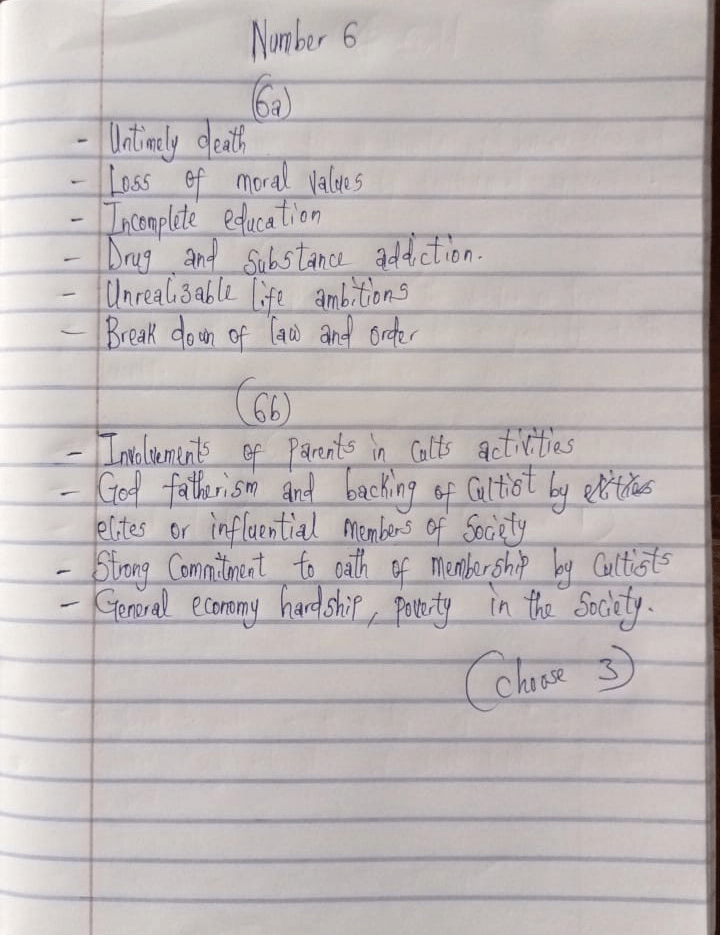 6(a) Six consequences of cultism in society are: