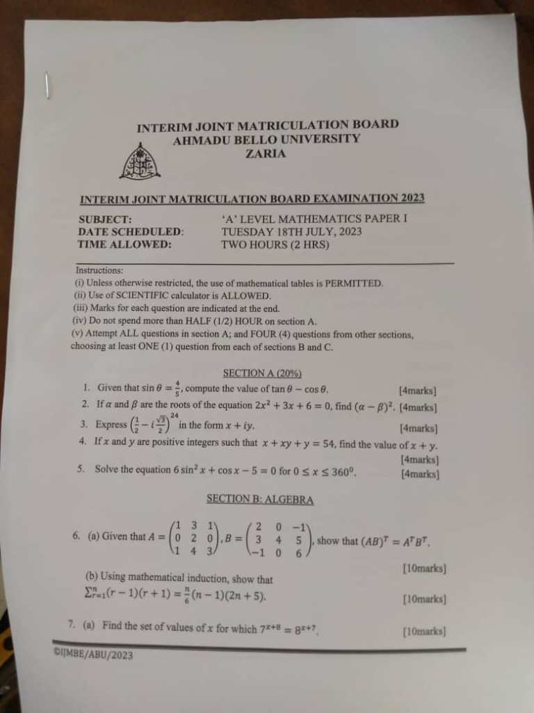 2023 IJMB A/L MATHEMATICS QUESTIONS ⤵️