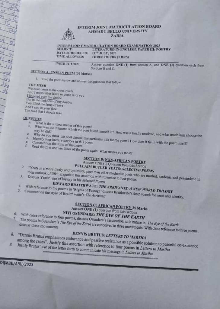 2023 IJMB LITERATURE III QUESTIONS ⤵️