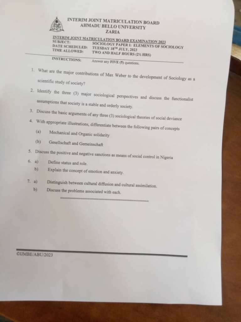 2023 IJMB SOCIOLOGY I QUESTIONS ⤵️